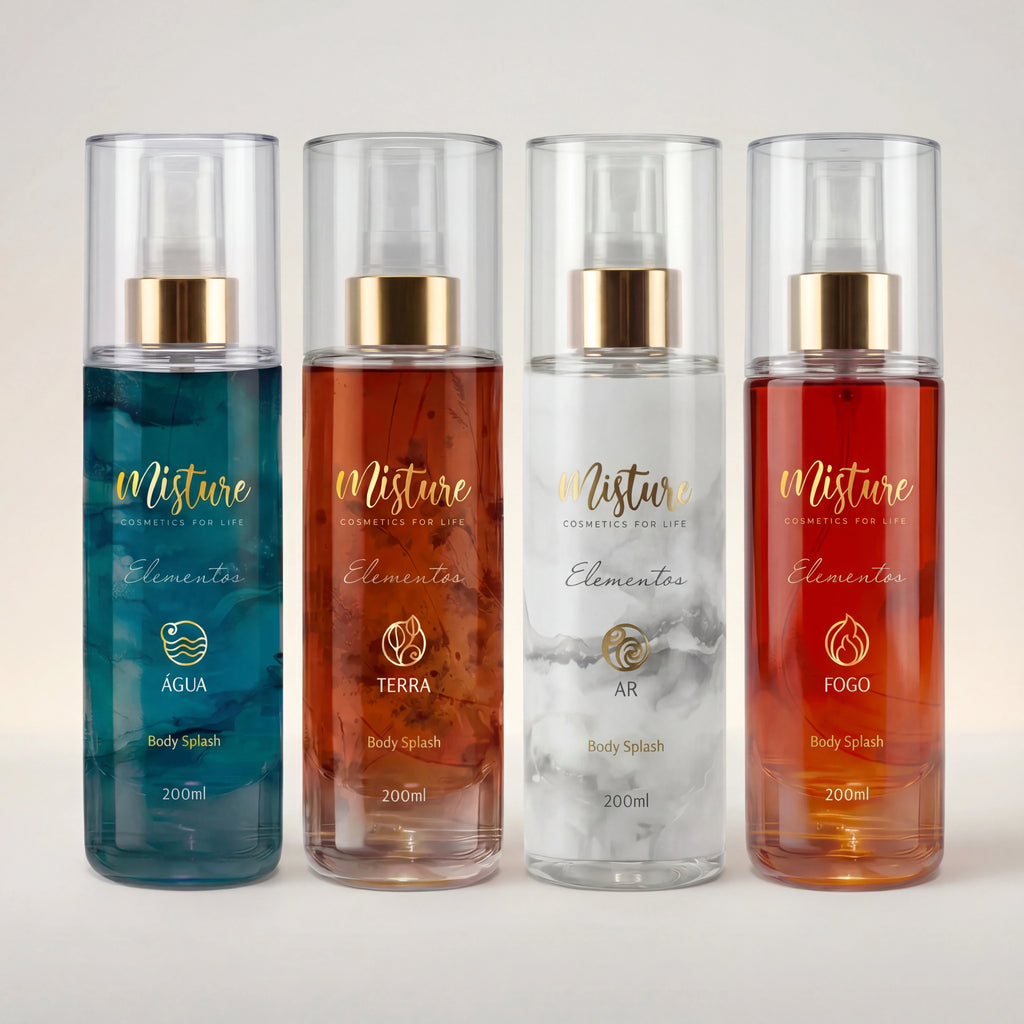 Descubra a essência dos quatro elementos da natureza com o Kit Body Splash Elementos Misture! Inspirado em Água, Fogo, Terra e Ar, cada fragrância foi cuidadosamente criada para proporcionar uma experiência única e marcante.
